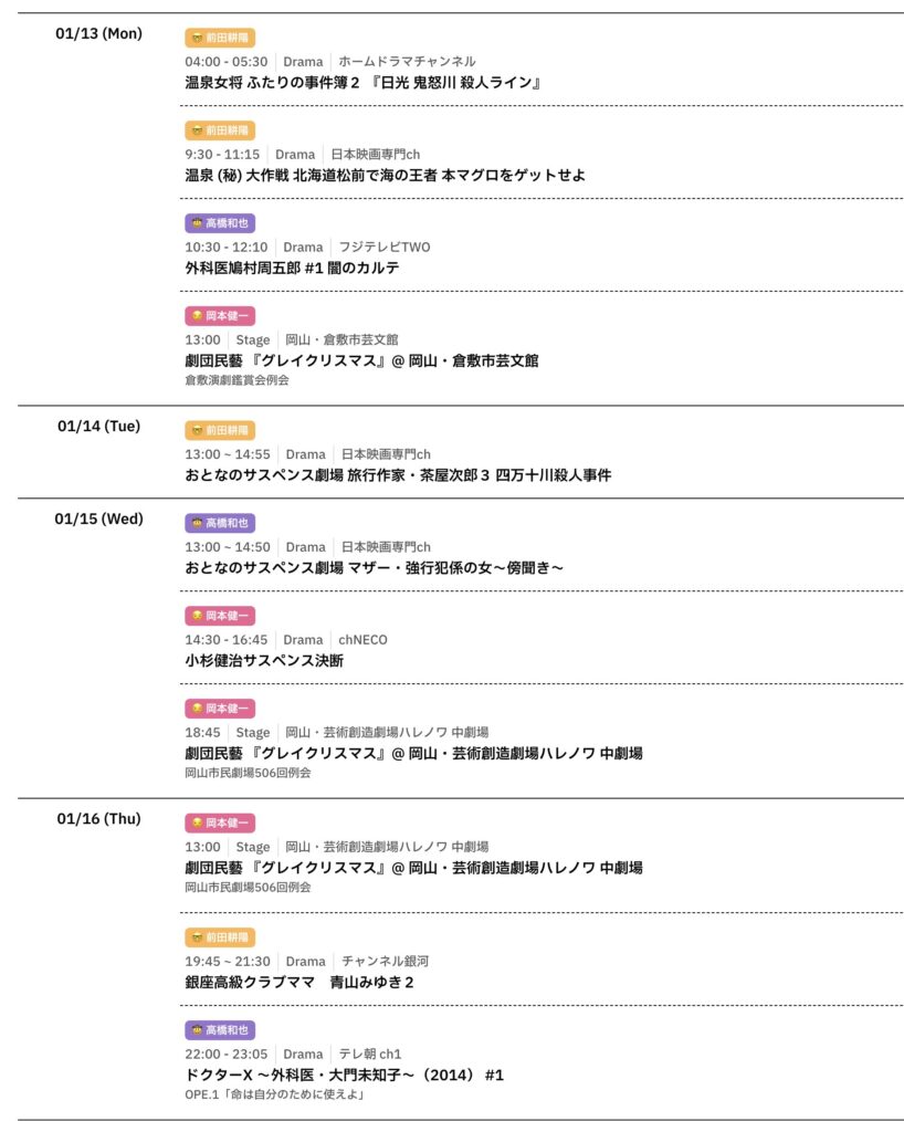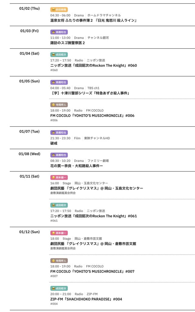 📅 2025/1/13~1/19㈰ までのスケジュールをお届けします。 (現時点で確認可能な... -