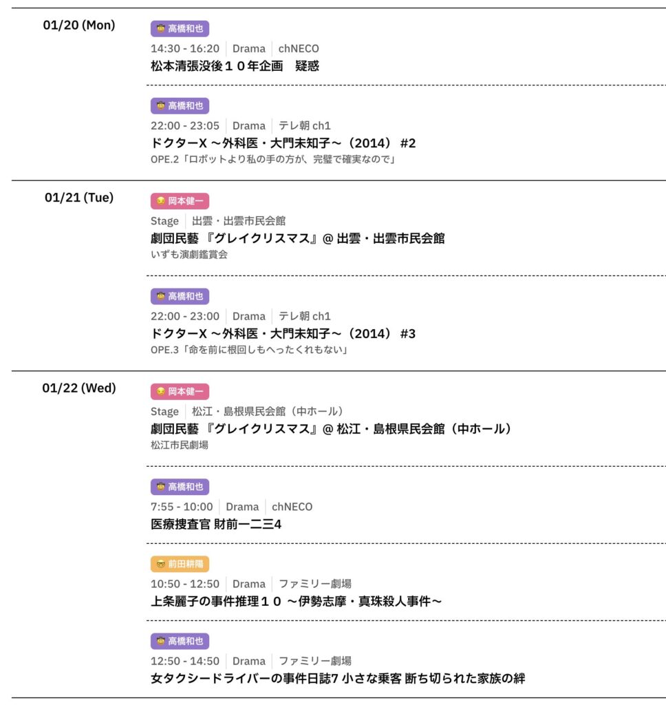📅 2025/1/20~1/26㈰ までのスケジュールをお届けします。 (現時点で確認可能な... -