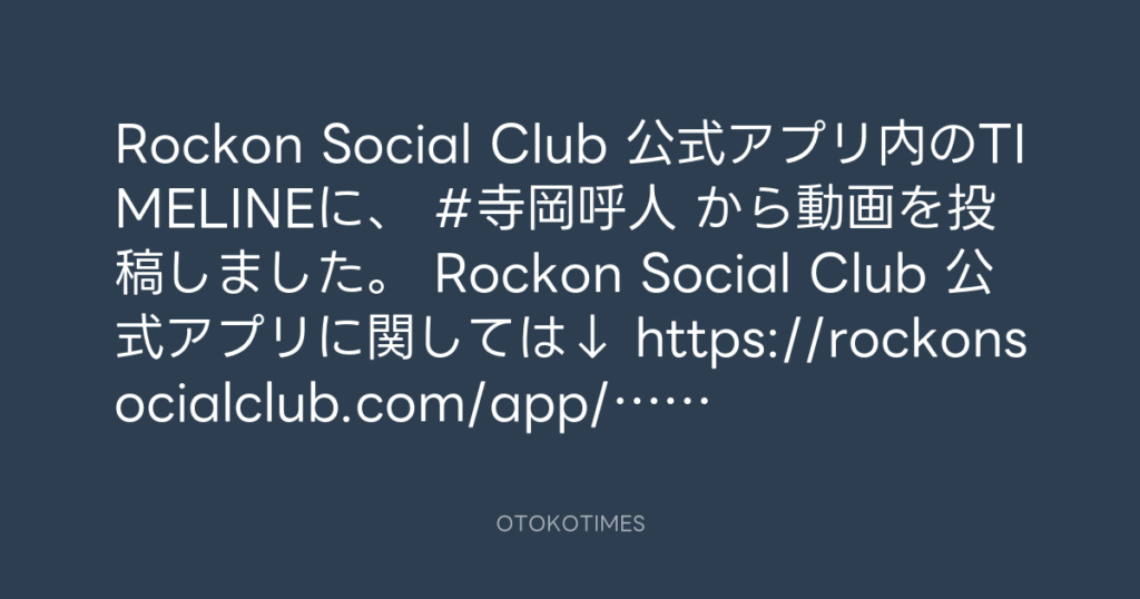 Rockon Social Club 公式アプリ内のTIMELINEに、 #寺岡呼人 から動画を投稿しまし... -