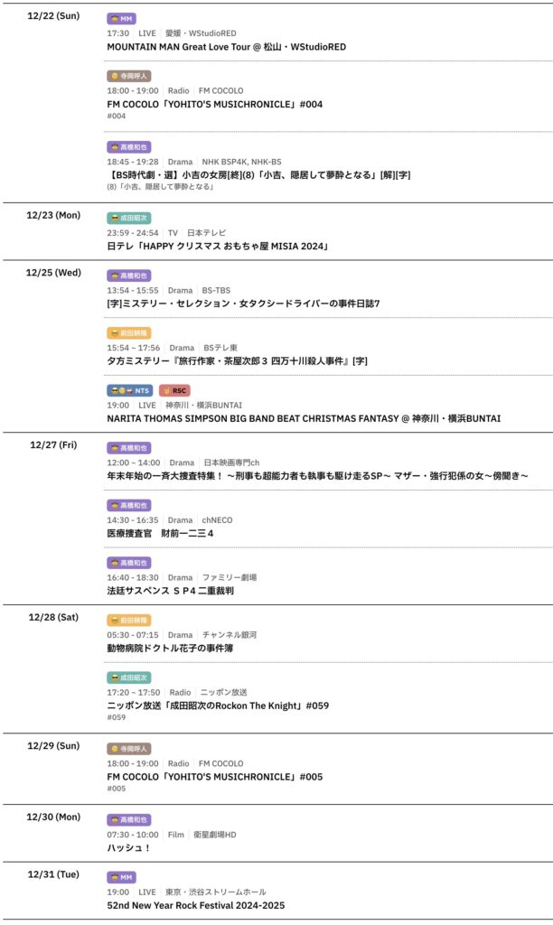 年末までのスケジュールをお届けします。 (現時点で確認可能な範囲のみ) -
