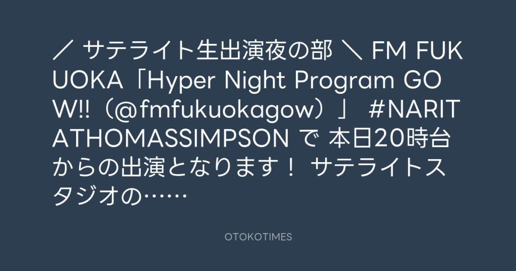 #NARITATHOMASSIMPSON ただいま FM FUKUOKA 生放送中 FM FUKUOKA のサイトにも現状... -