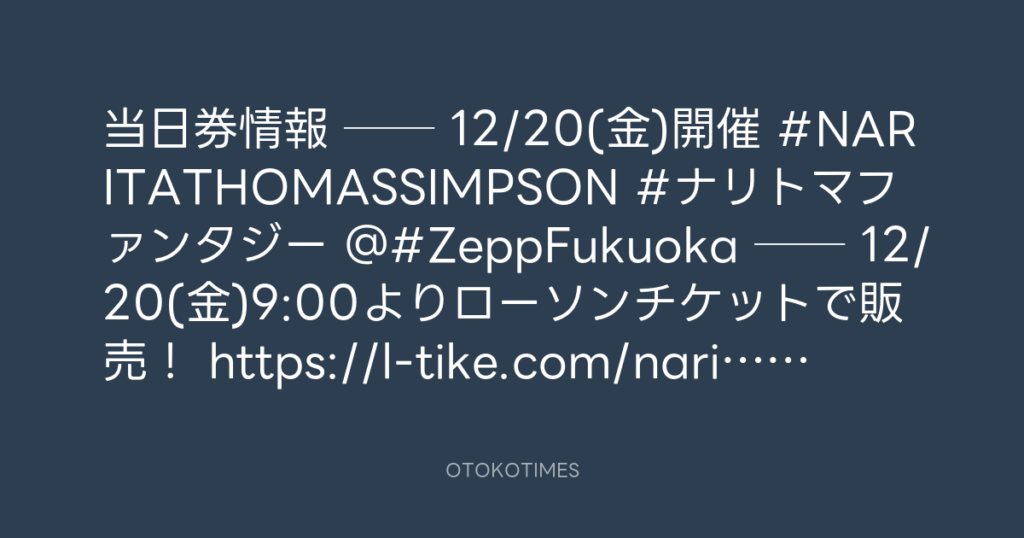 📢当日券情報🎫 🎸── 12/20(金)開催🔥 #NARITATHOMASSIMPSON #ナリトマファンタジ... -