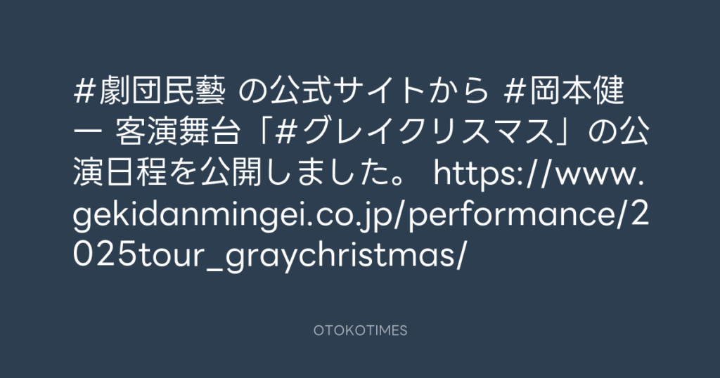 #劇団民藝 の公式サイトから #岡本健一 客演舞台「#グレイクリスマス」の公演日程...