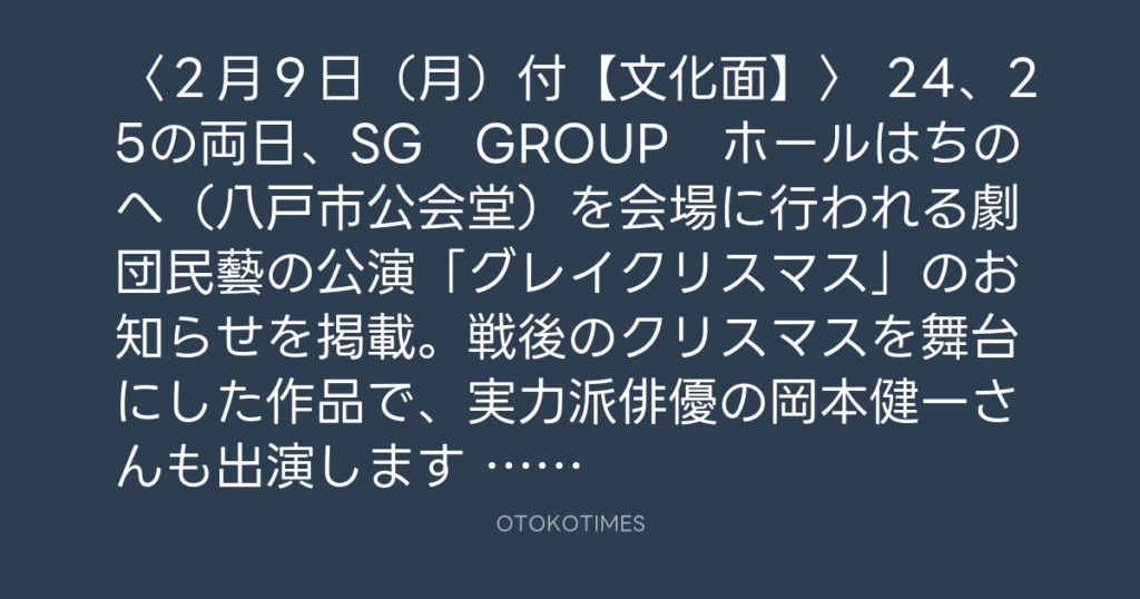 デーリー東北新聞社文化部 @BUNKA_DAILY – 10:47・2026年2月9日