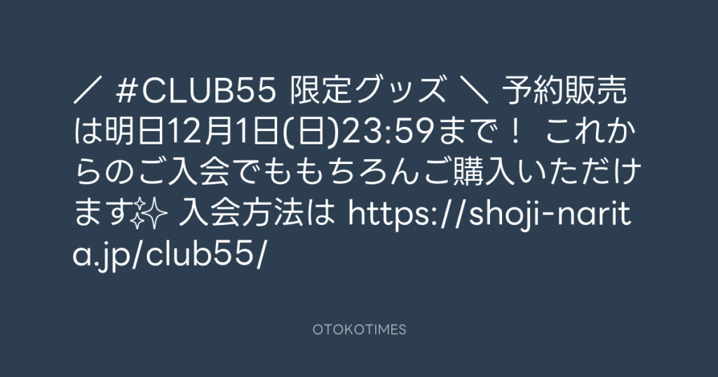 / 📢#CLUB55 限定グッズ \ 予約販売は明日12月1日(日)23:59まで! これからのご... -