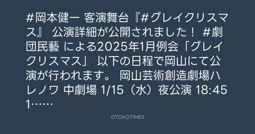 #岡本健一 客演舞台『#グレイクリスマス』 公演詳細が公開されました! #劇団民藝 ... -
