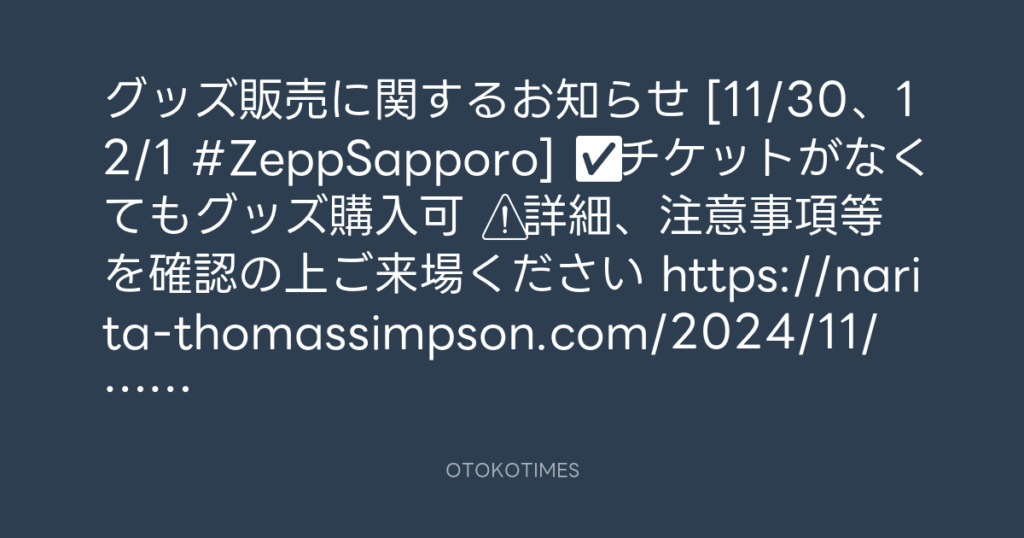📢グッズ販売に関するお知らせ [11/30、12/1 #ZeppSapporo] ✅チケットがなくても... -