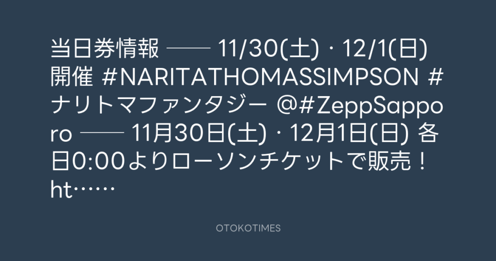 📢当日券情報🎫 🎸── 11/30(土)・12/1(日)開催🔥 #NARITATHOMASSIMPSON #ナリトマ... -