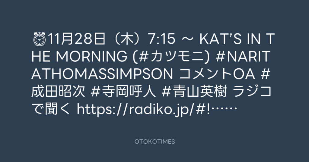 ⏰ 11月28日(木)7:15 〜 KAT’S IN THE MORNING (#カツモニ) #NARITATHOMASSIMPSO... -