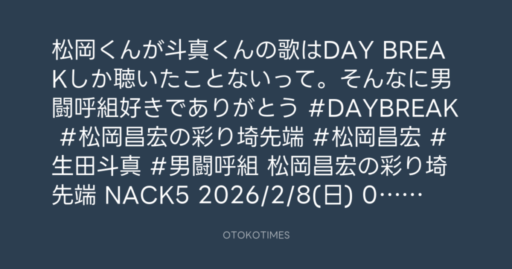 OTOKOTIMES @OtokoTimes1988 – 12:39・2026年2月8日