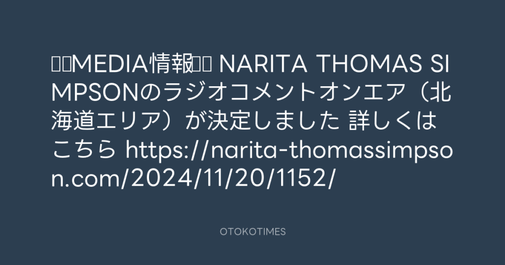 ◥◣MEDIA情報◢◤ NARITA THOMAS SIMPSONのラジオコメントオンエア(北海道エリア)が... -