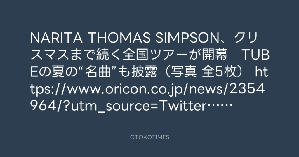 🎸 NARITA THOMAS SIMPSON、クリスマスまで続く全国ツアーが開幕 TUBEの夏の“名曲”... -
