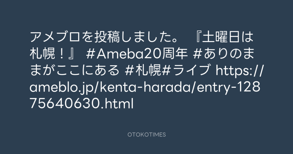 アメブロを投稿しました。 『土曜日は札幌!』 #Ameba20周年 #ありのままがここに... -