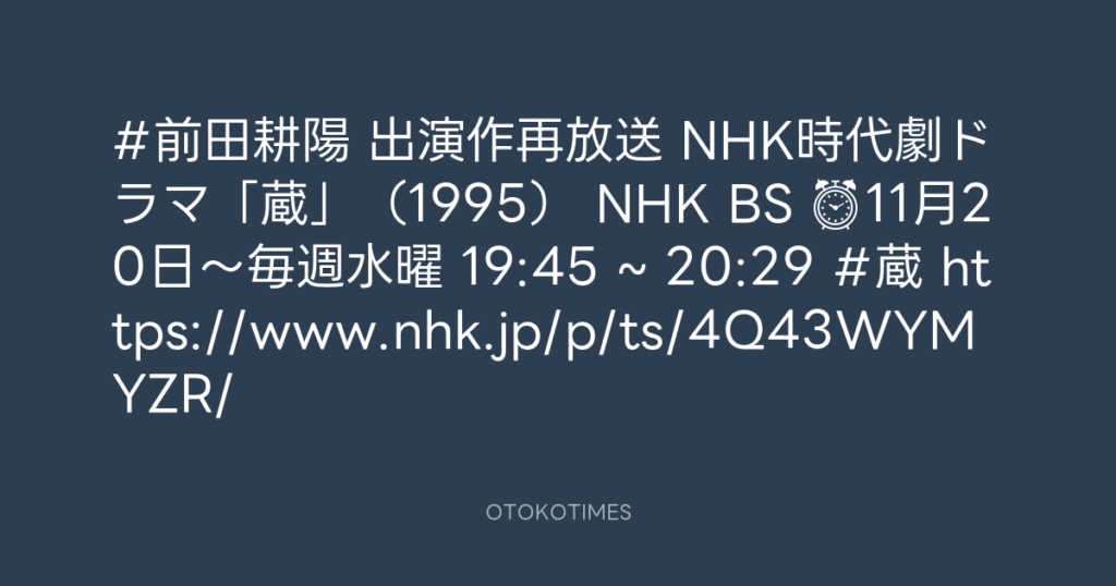 #前田耕陽 出演作再放送 NHK時代劇ドラマ「蔵」(1995) 📺 NHK BS ⏰ 11月20日〜... -