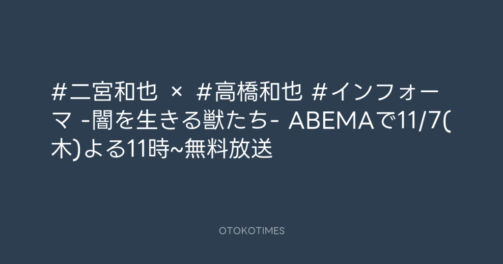 #二宮和也 × #高橋和也 #インフォーマ -闇を生きる獣たち- ABEMAで11/7(木)よる11... -