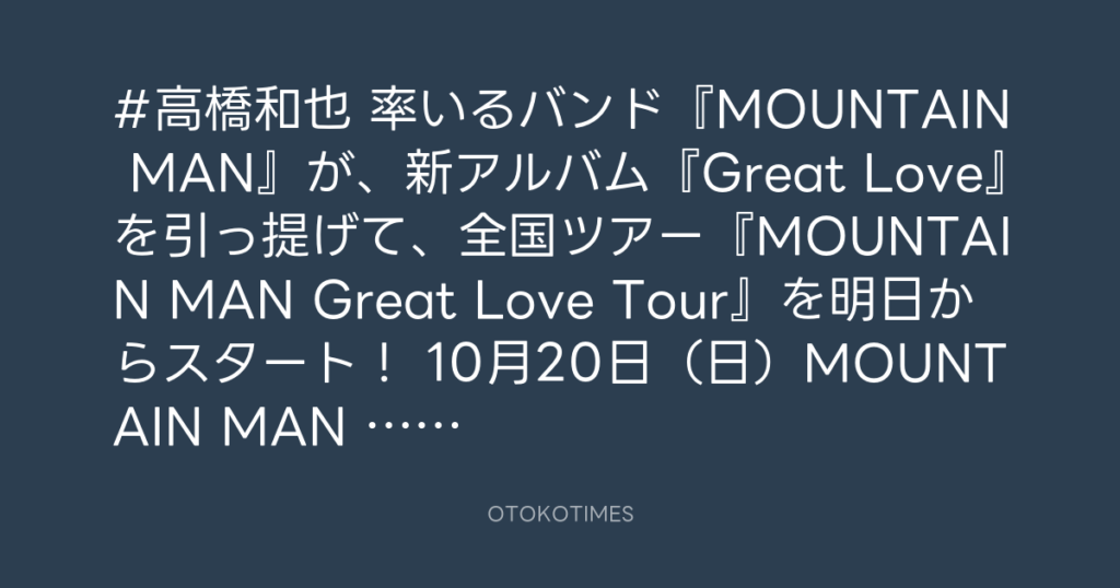 #高橋和也 率いるバンド『MOUNTAIN MAN』が、新アルバム『Great Love』を引っ提げ... -