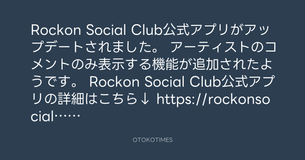 Rockon Social Club公式アプリがアップデートされました。 アーティストのコメント... -
