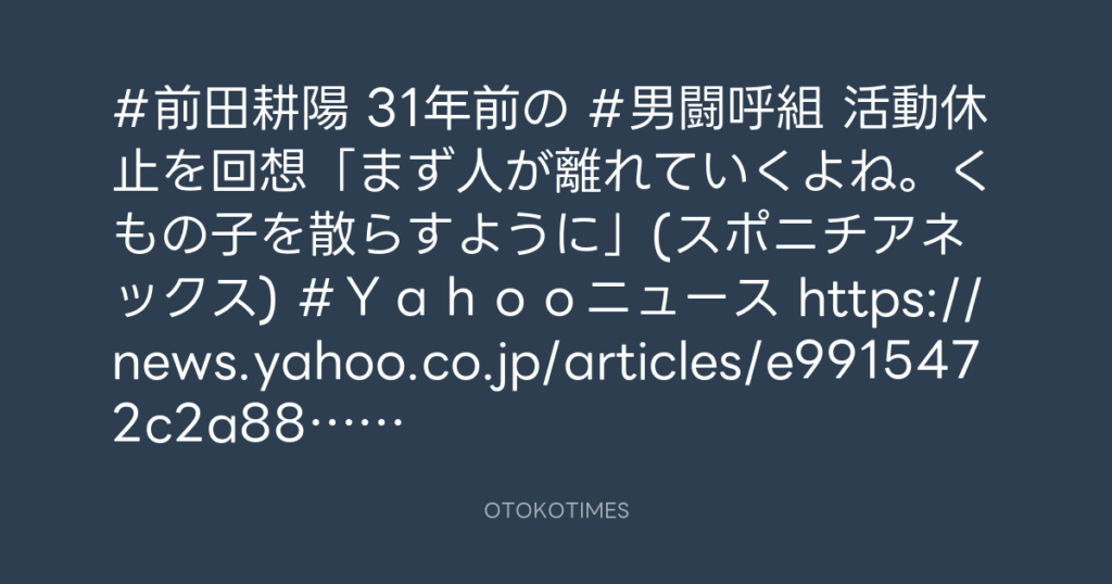 #前田耕陽 31年前の #男闘呼組 活動休止を回想「まず人が離れていくよね。くもの子... -
