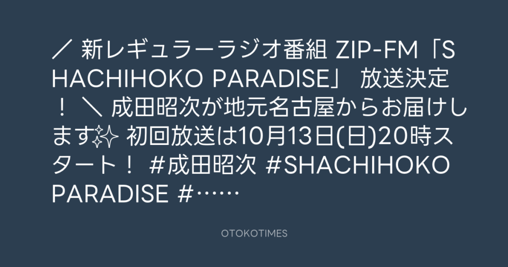 / 📻新レギュラーラジオ番組 ZIP-FM「SHACHIHOKO PARADISE」 放送決定! \ 成田... -