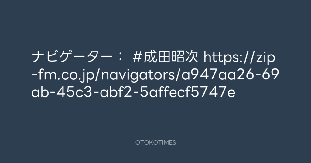 ナビゲーター: #成田昭次 https://zip-fm.co.jp/navigators/a947aa26-69ab-45c3-a... -