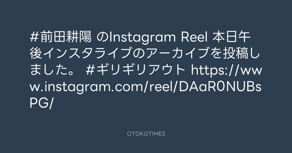 #前田耕陽 のInstagram Reel 本日午後インスタライブのアーカイブを投稿しました。...