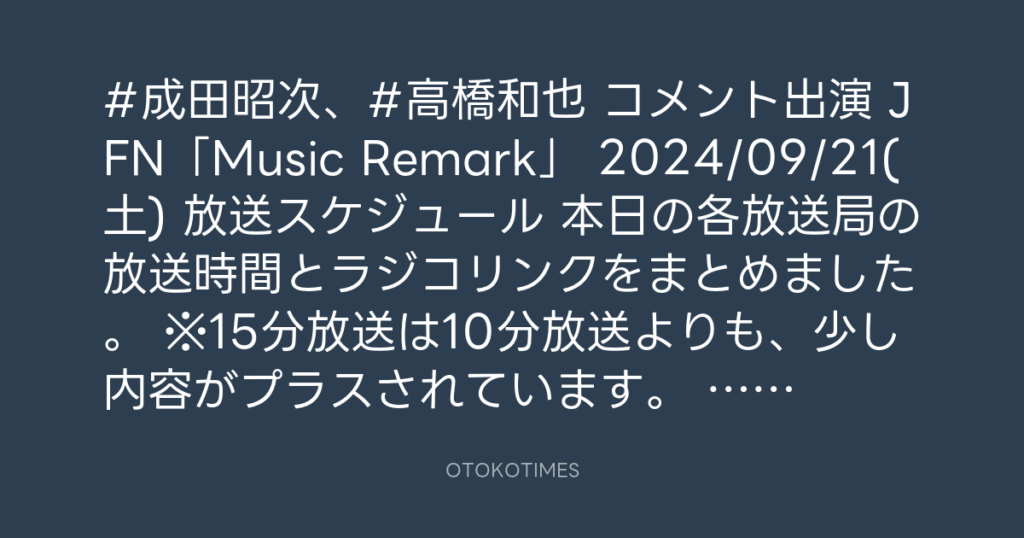 📻 #成田昭次、#高橋和也 コメント出演 JFN「Music Remark」 2024/09/21(土) 放送... -