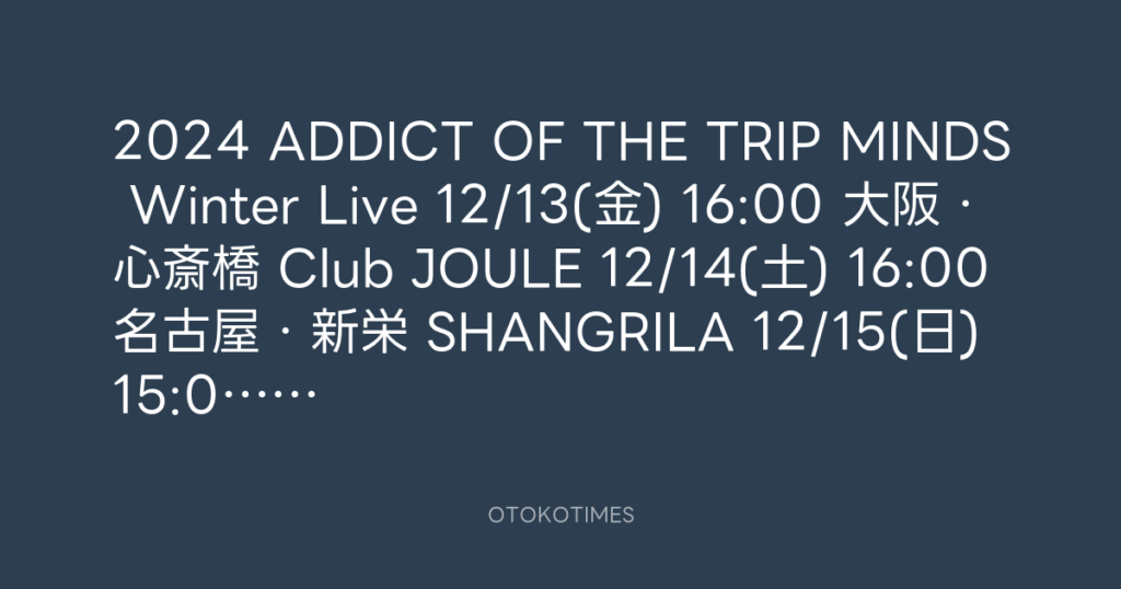 2024 ADDICT OF THE TRIP MINDS Winter Live 📅12/13(金) 16:00 📍大阪・心斎橋 Cl... -