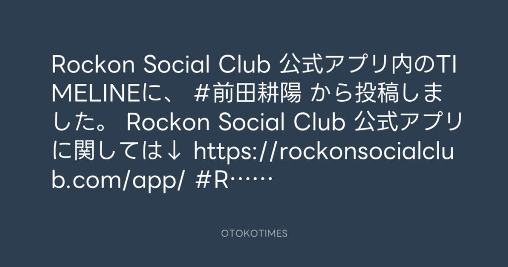 Rockon Social Club 公式アプリ内のTIMELINEに、 #前田耕陽 から投稿しました。 Ro... -