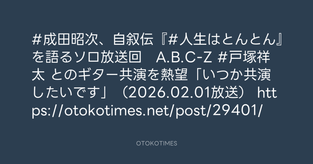 #成田昭次、自叙伝『#人生はとんとん』を語るソロ放送回 A.B.C-Z #戸塚祥太 との... -