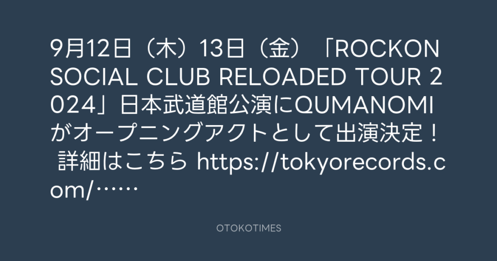 9月12日(木)13日(金)「ROCKON SOCIAL CLUB RELOADED TOUR 2024」日本武道館公... -