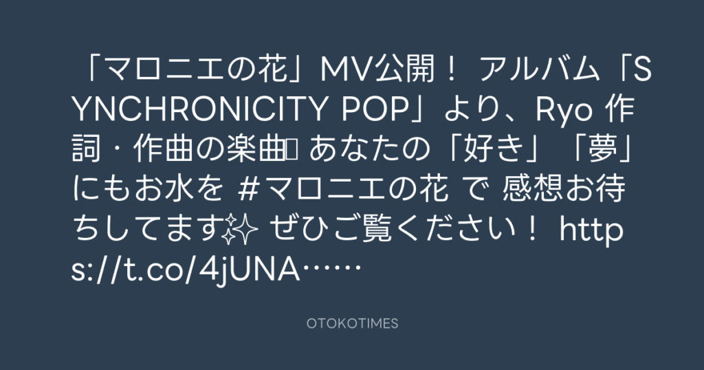 「マロニエの花」MV公開!🌿 アルバム「SYNCHRONICITY POP」より、Ryo 作詞・作曲... -