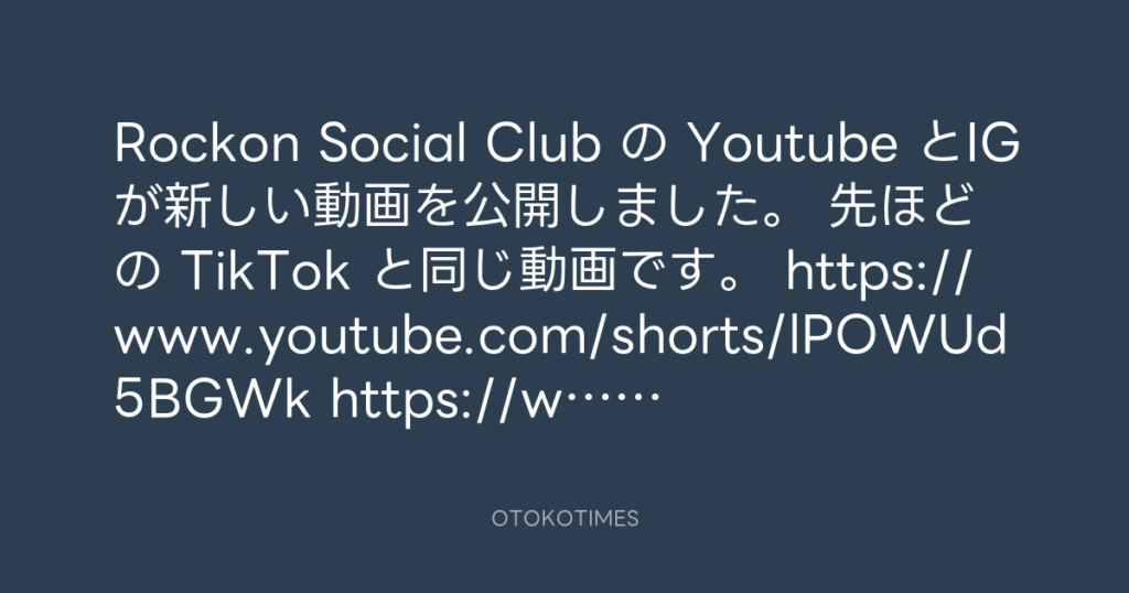 Rockon Social Club の Youtube とIGが新しい動画を公開しました。 先ほどの TikTo... -