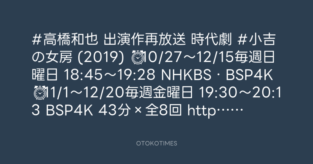 #高橋和也 出演作再放送 時代劇 #小吉の女房 (2019) ⏰10/27〜12/15毎週日曜日 18:... -