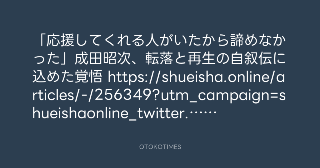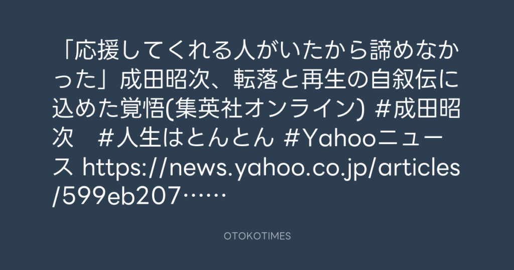 「応援してくれる人がいたから諦めなかった」成田昭次、転落と再生の自叙伝に込め... -