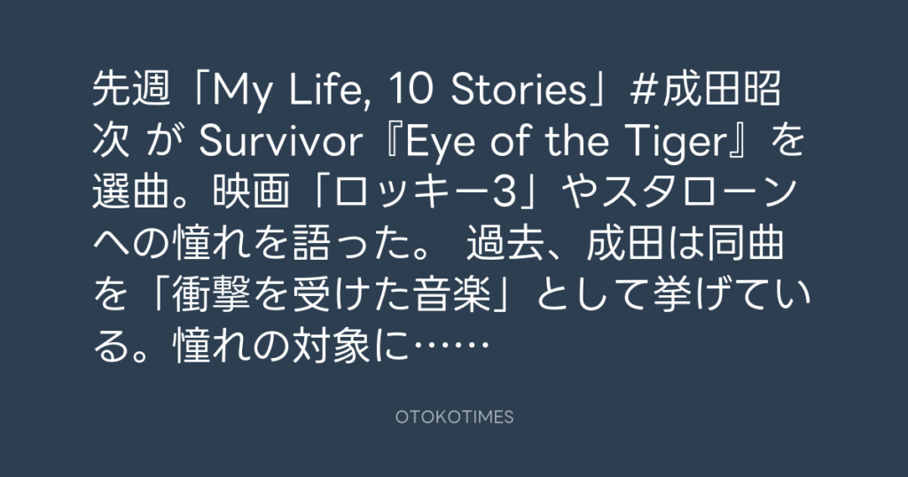 先週「My Life, 10 Stories」#成田昭次 が Survivor『Eye of the Tiger』を選曲。... -