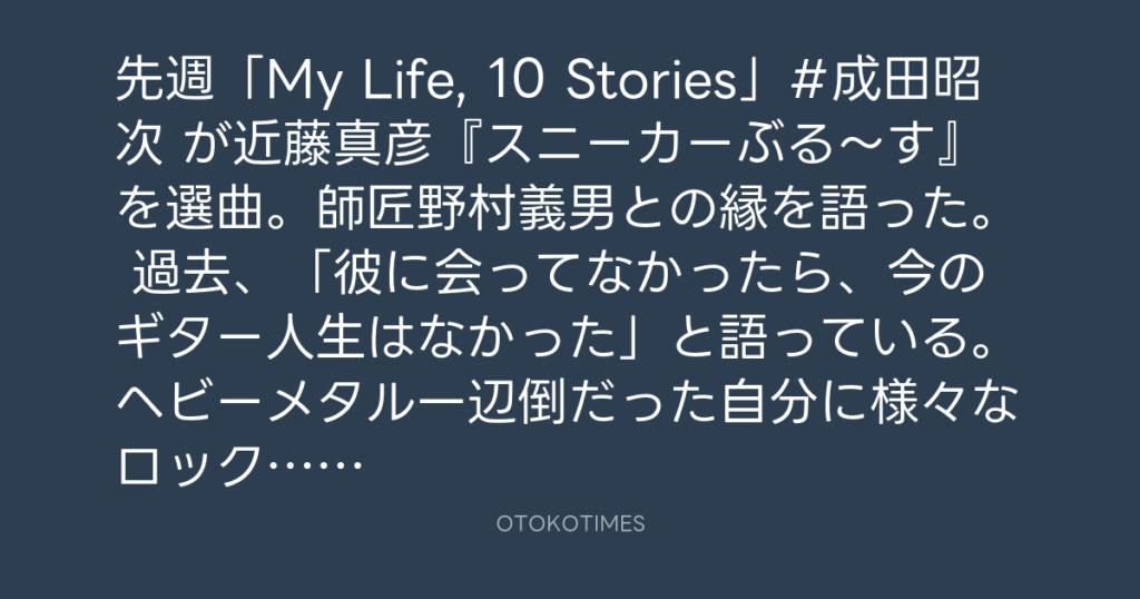 先週「My Life, 10 Stories」#成田昭次 が近藤真彦『スニーカーぶる〜す』を選曲。... -