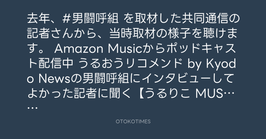 去年、#男闘呼組 を取材した共同通信の記者さんから、当時取材の様子を聴けます。 ... -