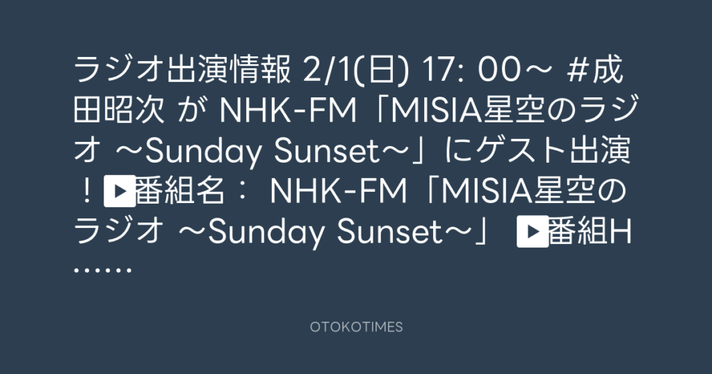 🆕📢ラジオ出演情報📻 2/1(日) 17: 00〜 #成田昭次 が NHK-FM「MISIA星空のラジオ ... -