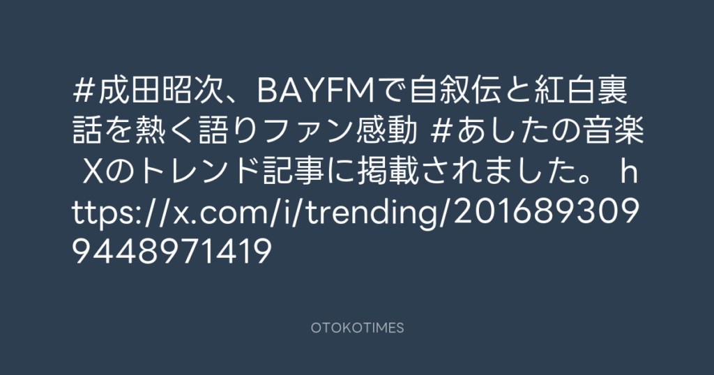 #成田昭次、BAYFMで自叙伝と紅白裏話を熱く語りファン感動 #あしたの音楽 Xのトレ... -