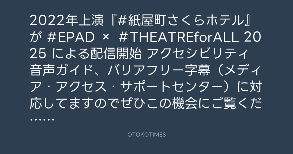 2022年上演『#紙屋町さくらホテル』が #EPAD × #THEATREforALL 2025 による配信開... -