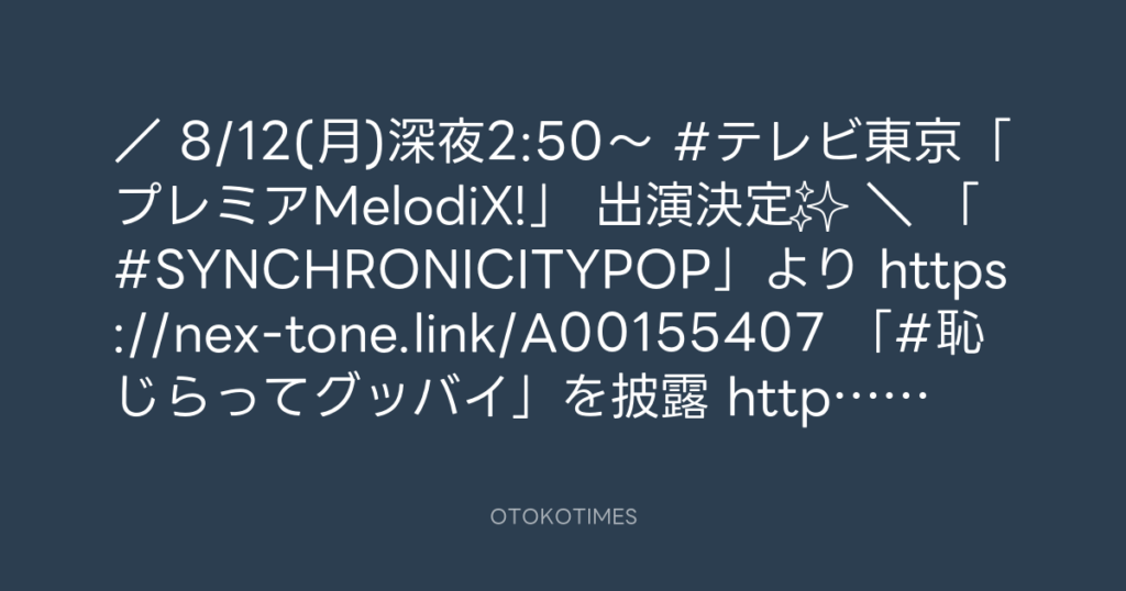 / 8/12(月)深夜2:50〜📺 #テレビ東京「プレミアMelodiX!」 出演決定✨ \ 「#SYNC... -