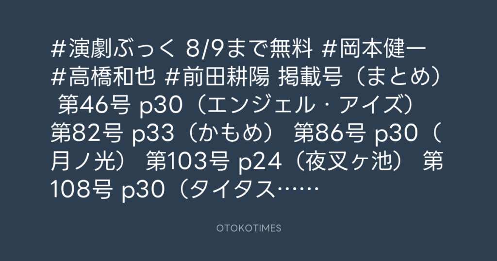 #演劇ぶっく 8/9まで無料 #岡本健一 #高橋和也 #前田耕陽 掲載号(まとめ) 🤓第46... -