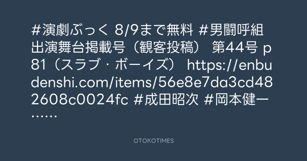 #演劇ぶっく 8/9まで無料 #男闘呼組 出演舞台掲載号(観客投稿) 第44号 p81(スラ... -