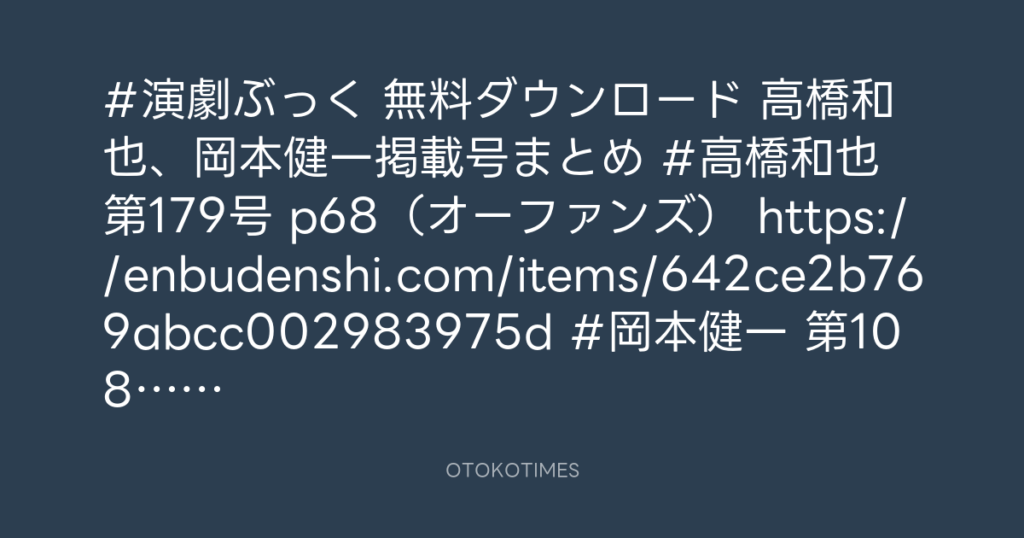 #演劇ぶっく 無料ダウンロード 岡本健一掲載号(追加情報) 😏 #岡本健一 📕 第117... -
