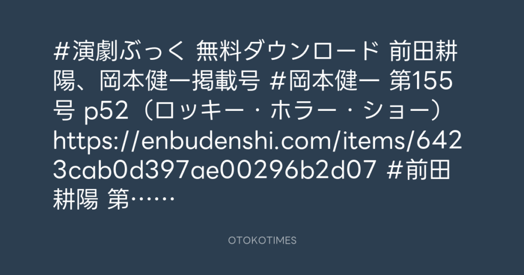 #演劇ぶっく 無料ダウンロード 前田耕陽、岡本健一掲載号 😏 #岡本健一 📕 第155号... -