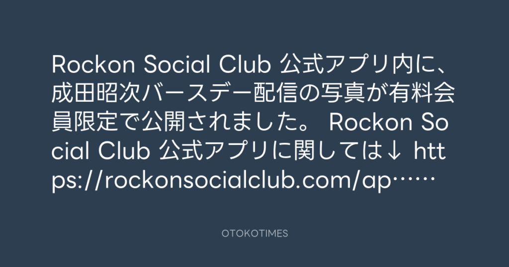 Rockon Social Club 公式アプリ内に、成田昭次バースデー配信の写真が有料会員限定... -