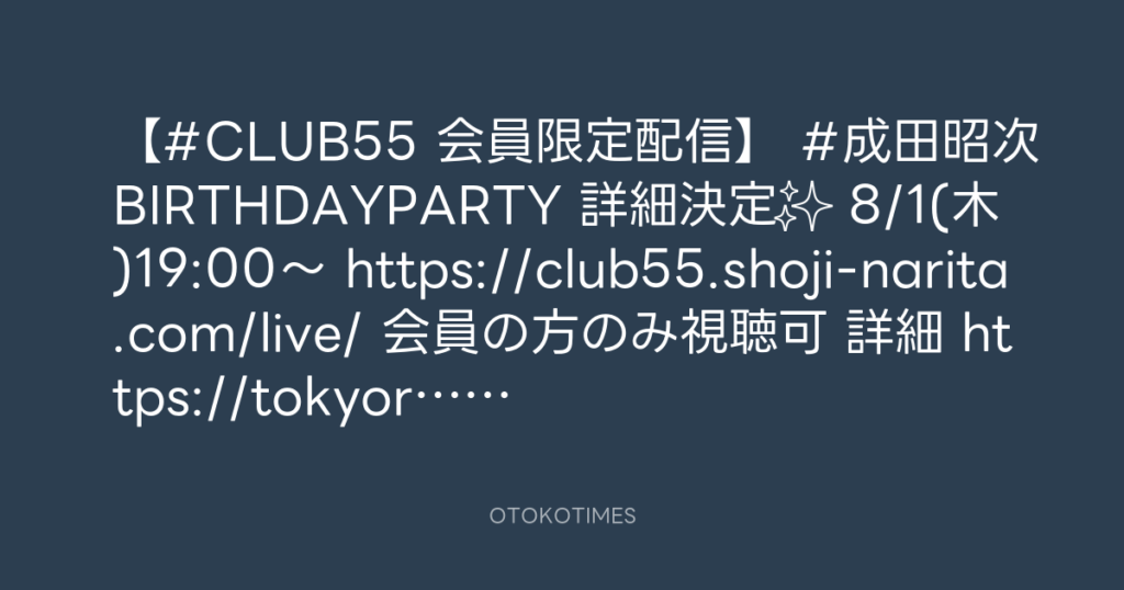 📢【#CLUB55 会員限定配信】 #成田昭次BIRTHDAYPARTY🎂 詳細決定✨ 🗓8/1(木)19:00... -