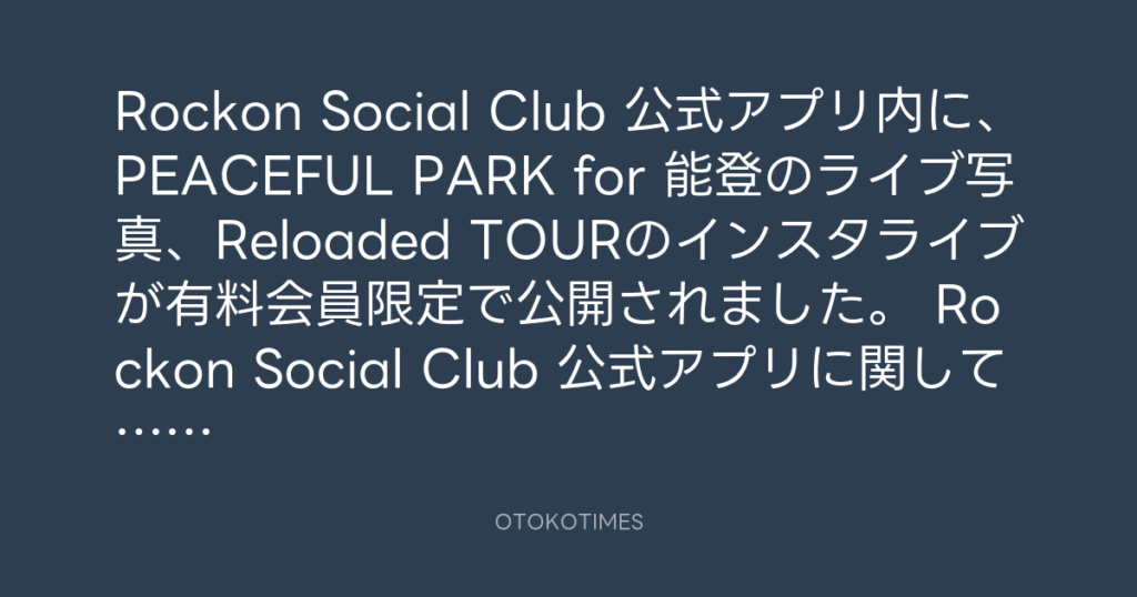 Rockon Social Club 公式アプリ内に、PEACEFUL PARK for 能登のライブ写真、Reload... -
