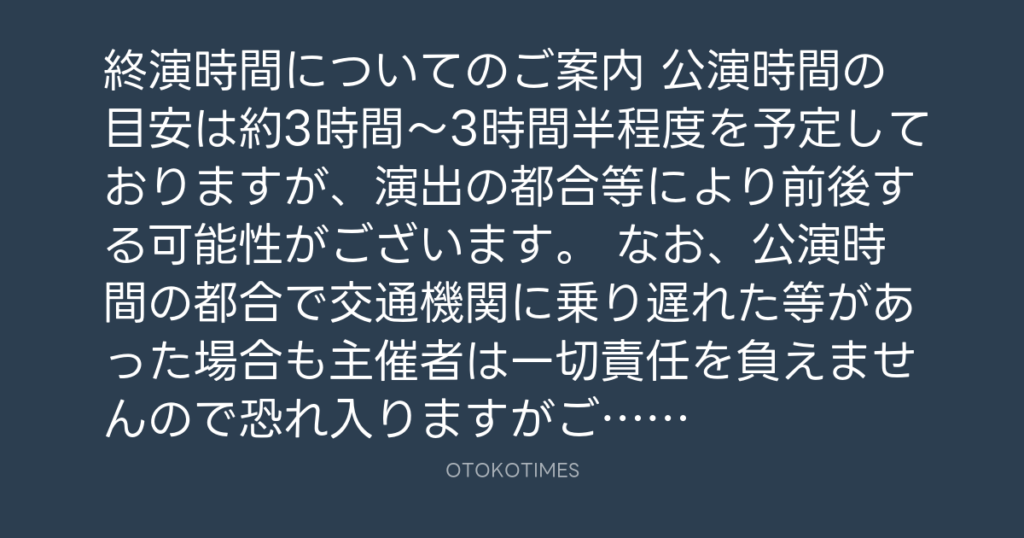 📢終演時間についてのご案内 公演時間の目安は約3時間〜3時間半程度を予定しており... -