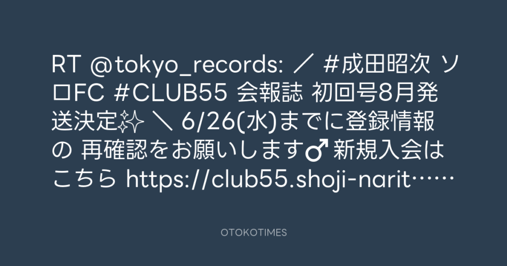 RT @tokyo_records: / #成田昭次 ソロFC🎸 #CLUB55 会報誌📖 初回号8月発送決定✨... -